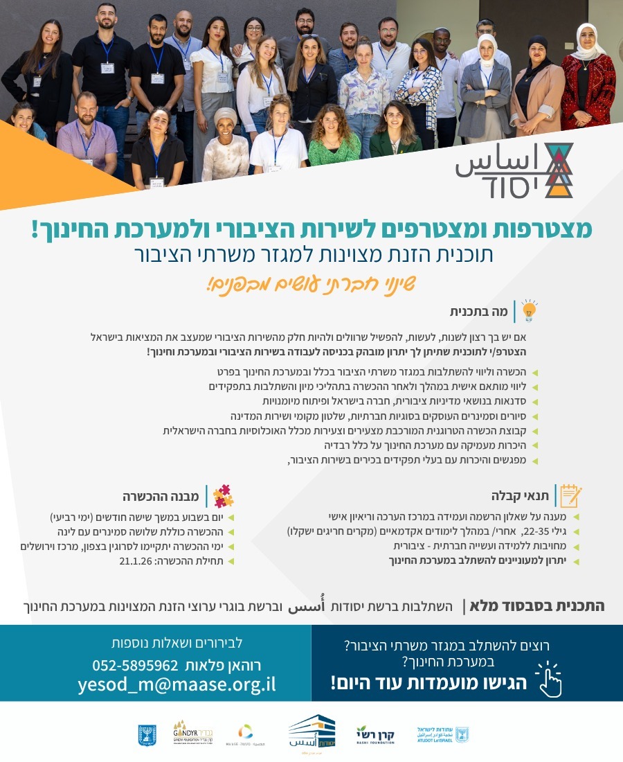 תכנית יסוד מכשירים את הדור הבא של משרתות ומשרתי הציבור בישראל.