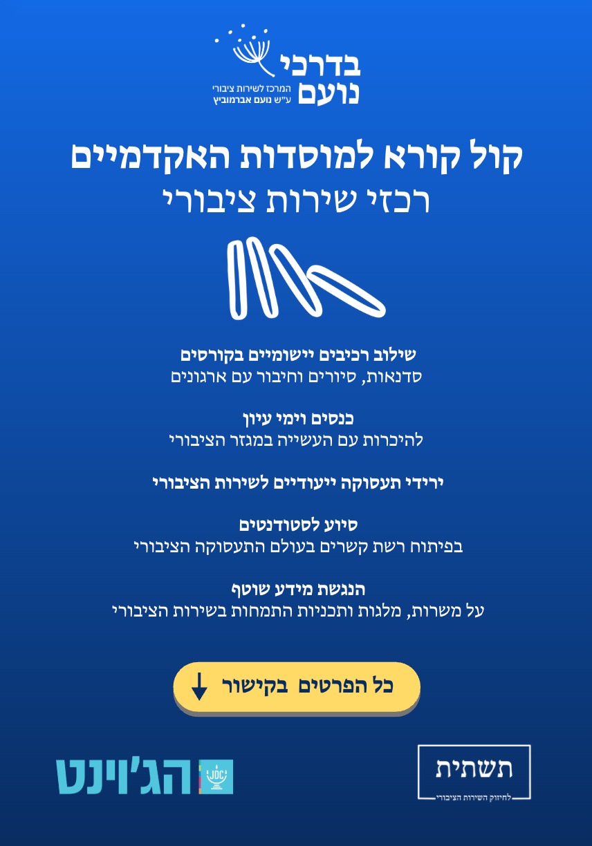 תפקיד חדש במוסדות האקדמיים שיחזק את הקשר בינם לבין השירות הציבורי וישלב חשיפה והכרות של סטודנטים להזדמנויות משמעותיות לעשייה.